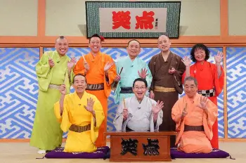 「笑点」新メンバーに決定した春風亭一之輔(後列右から2人目)を囲む笑点の大喜利メンバー。前列左から林家木久扇、春風亭昇太、三遊亭好楽、(後列左から)桂宮治、林家たい平、三遊亭小遊三、(1人おいて)山田隆夫(C)日本テレビ
