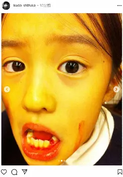 歯を抜いて口の周りに血がついている幼少期のKoki,の画像をアップし「2月生まれの皆様 自分の信じる道を、情熱と共に進まれてください!!追伸 揺れた歯は自分でいじらず 自然に抜けるまでまちましょう」と結んだ。