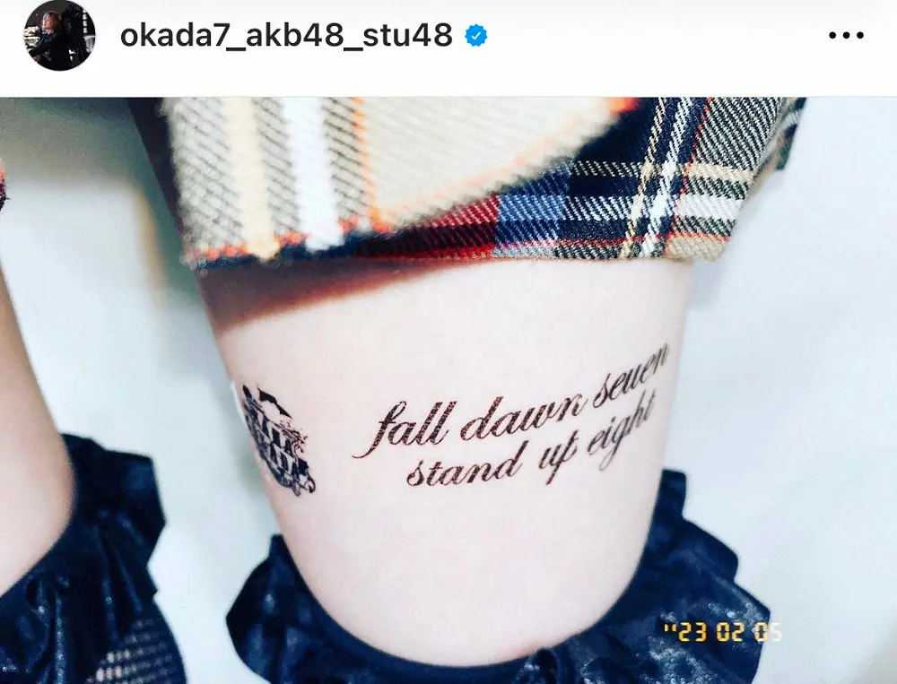 AKB48の岡田奈々 Photo by スポニチ AKB48岡田奈々、太もものタトゥーシール“チラ見せ”も…ファンから猛ツッコ… ギャラリーで見る この記事のフォト 2023年02月08日の画像一覧 もっと見る 2023年02月08日の画像をもっと見る