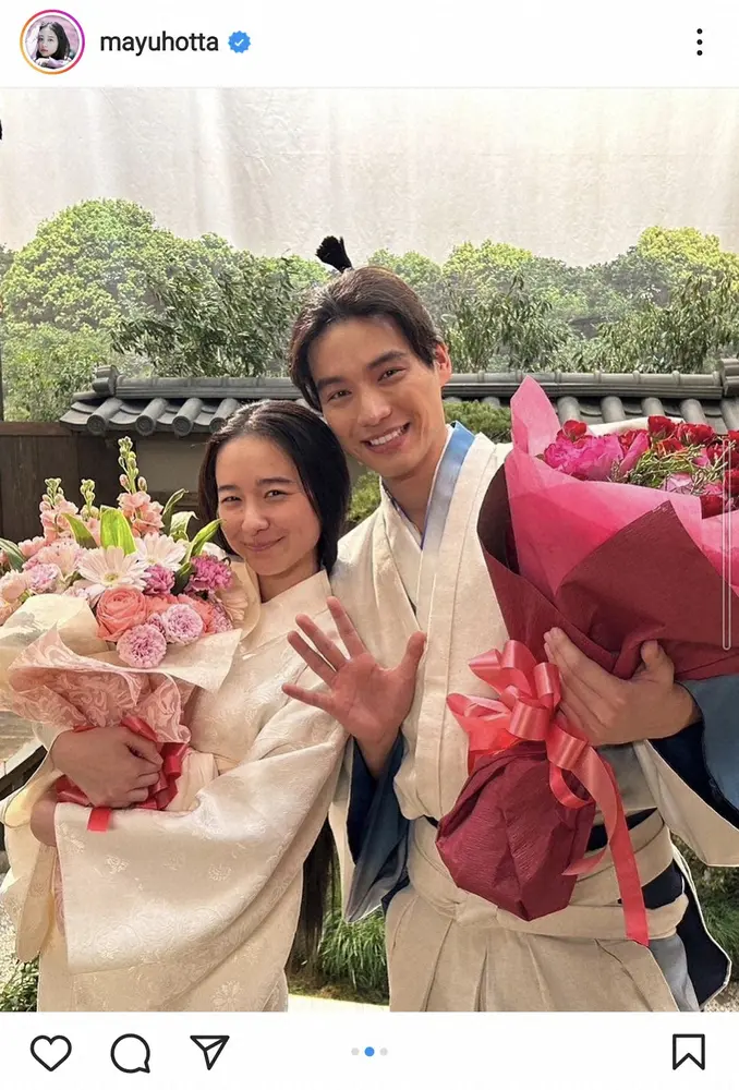 「大奥」は7日、第5話が放送され、大奥の創始から描かれた「三代将軍家光・万里小路有功編」が完結。徳川家光役を演じた堀田は自身の撮影終了時のものと思われる、花束を持った自身と万里小路有功役の福士蒼汰との2ショットなどをアップ。「家光(千恵)を演じるにあたり大きな責任を感じながら日々、全身全霊で役と向き合う中で 一番多くの時を共に過ごした、有功 福士蒼汰さんには何度も手を差し伸べていただきました」と感謝した。