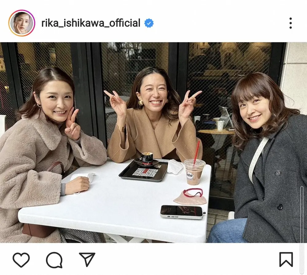 元モーニング娘。でタレントの石川梨華(38)が9日、自身のインスタグラムを更新。元カントリー娘。でタレントの里田まい(38)、元ココナッツ娘。でタレントの長手絢香(41)との3ショットを披露した。