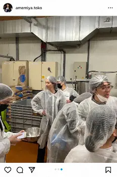 工場内では「パティシエの元嫁なだけに、工場内でシャワーキャップ(ちなみにフランス語ではcharlotteといいます)をかぶるのはコロナ以前から衛生上当たり前というか、まったく抵抗がないのですが、被ったままクイズとか出しちゃってます。お見苦しい映像かと思いますが、お許しください」とキャップ姿で見学している様子もアップした。雨宮は2002年にパティシエの青木定治氏と結婚。2児をもうけたが、2015年に離婚している。