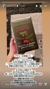 IMALUは「グラミーの現場にて。ジョン・カビラさんがわざわざ楽屋に来てくださり『HAPPY VALENTINE'S DAY!』と流暢な英語で素敵なお菓子を渡してくださいました」とつづり、しゃれたデザインのチョコレート缶をアップ。