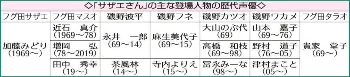 ≪「サザエさん」共演声優悼む≫「サザエさん」の共演声優にも悲しみが広がった。マスオの田中秀幸(72)は「大切な宝物を失った悲しみでいっぱいです。穏やかな語り口、優しいお言葉、素敵な笑顔…しっかりと胸に刻んでおきます」と悼んだ。カツオの声を担当する冨永みーな(56)は「いつもいつも優しくしていただきました。そしてとてもキュートでいらっしゃった」と振り返った。ワカメの津村まこと(57)は「おちゃめでタラちゃんそのままのような本当に可愛らしい優しい方でした」、フネの寺内よりえ(70)は「折あるごとに温かく見守りお声がけいただいた」とした。波平の茶風林(61)は「いつもオシャレでニコニコと優しい笑顔を振りまいてくださいました」と、家族皆がしのんだ。