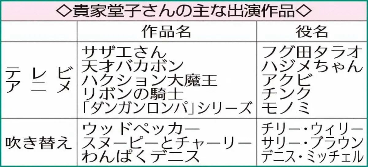 「サザエさん」の主な登場人物の歴代声優 Photo by スポニチ 「タラちゃん」の声優・貴家堂子さん死去 87歳 放送開始の69年から出演 … ギャラリーで見る この記事のフォト 2023年02月11日の画像一覧 もっと見る 2023年02月11日の画像をもっと見る