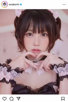 人気コスプレイヤーえなこ(29)が11日、自身のインスタグラムを更新。黒&ピンクのリボン服姿で指ハートポーズを披露した。