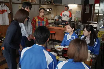 舞(福原)が出勤の支度をしていると、かつて貴司(赤楚衛二)から送られてきた短歌が目に留まる。舞は前日に久留美(山下美月)に告げた貴司への気持ちを思い出すが、それを振り切るように仕事へ向かう。昼食をめぐみ(永作博美)たちIWAKURAの社員たちと「うめづ」でとっていると新聞記者の御園(山口紗弥加)と出くわし、IWAKURAが御園から取材を受けることになる。
