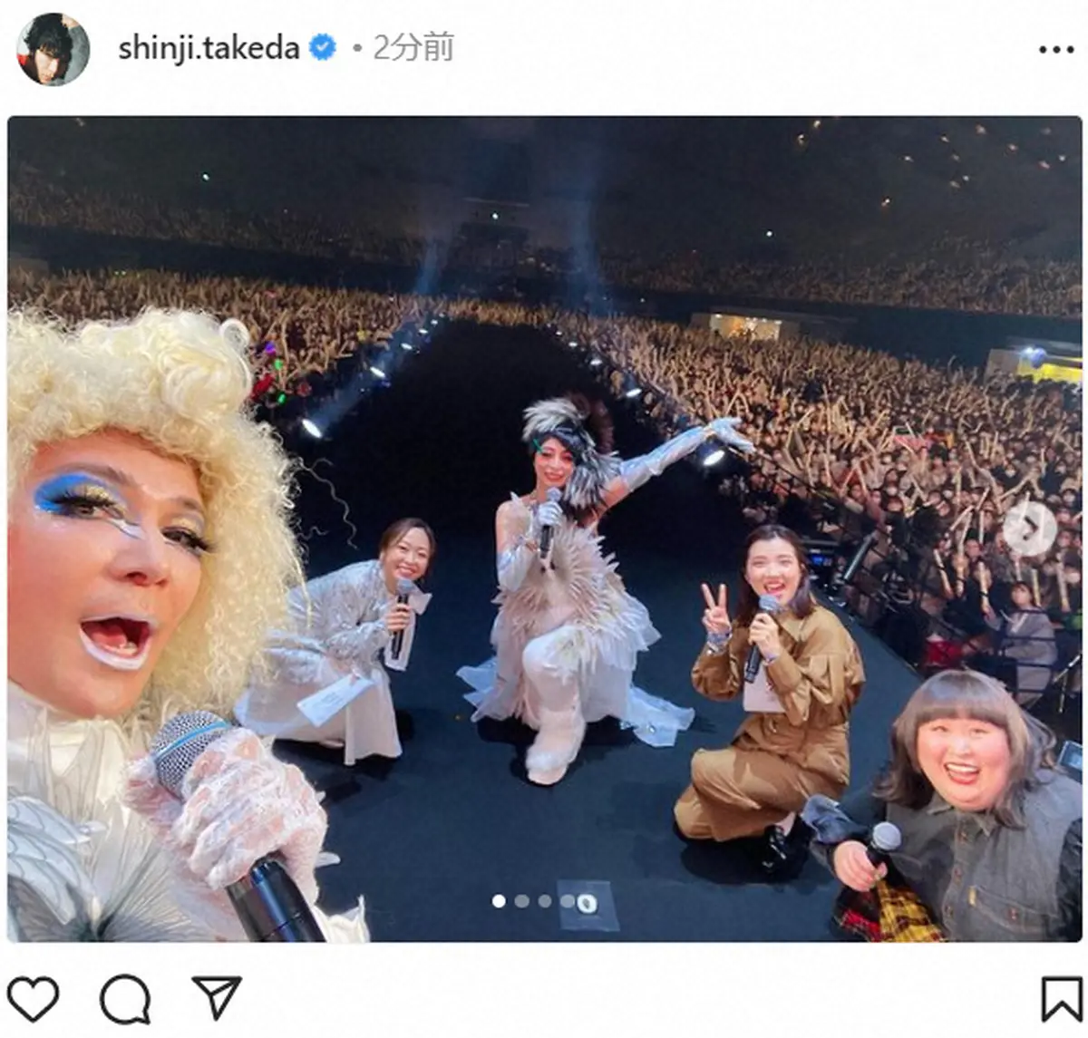 武田は「え~と…まず、手前のマイク持ってる金髪カーリーが僕です」とつづり、女装姿をアップ。「#TGC和歌山のランウェイにて、3月4日から始まるドラマ『#自由な女神 #バックステージインニューヨーク』のワンシーンを撮影させて頂きました ご協力頂いた#TGC関係者の皆様ありがとうございました!」とつづった。