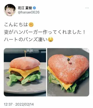 「毎回、奥様の手作りには驚いちゃいます」との反応も。昨年のバレンタインデーにはハート型バンズのハンバーガー、誕生日やひな祭りにも妻の愛情たっぷりでクオリティーの高いスイーツやちらしずしが披露され、毎回絶賛の声が届いている。