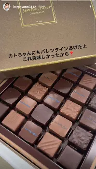 綾菜は、自身の父に無添加の焼き菓子のセットを贈ったと報告。さらに、「カトちゃんにもバレンタインあげたよ これ美味しかったから」とハートマーク付きでつづり、ジャン・ポール・エヴァンのボンボンショコラの写真を投稿した。