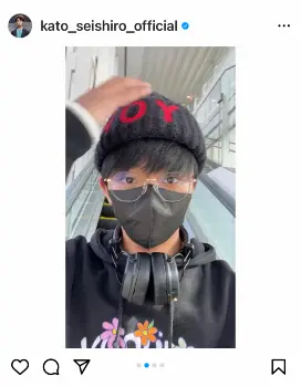 この日、「何を投稿しよう…そう考えた結果、『そうじゃん、ハイトーンの髪の毛ばっかり載せてたってことは、黒髪に戻った今、なんでもない僕のへたっぴなセルフィーですら、何かの需要になったりするのではないかしら!!!』ということで、笑黒髪推しの皆々様 戻ってきましたよーーーー!!!」と黒髪でニット帽をかぶり、眼鏡をした姿を披露した。