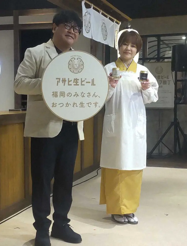 アサヒビールの期間限定イベント「アサヒ生ビール マルエフ横丁 in 福岡」がきょう15日に福岡市の天神地下街イベントスペースにオープンした。PRイベントが行われ、タレントのカンニング竹山(51)と元「モーニング娘。」でタレントの中澤裕子(49)が登壇した。