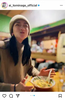 好きだからこそ、「ラーメンは年に2回」と決めていることを公表している冨永。この日、「今年1回目のラーメン!」と記し、美味しそうにラーメンを食する写真をアップ。「大奥の撮影が終わったご褒美に、食べるでしょー」と「大奥」の撮了を記念し、食べたと明かし、「今回はホルモン焼き屋さんのラーメンでした」とつづった。