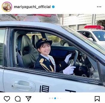 この投稿のコメント欄には「かわいい、、」「お勤めご苦労様でした」「めっちゃお似合いですし、素敵すぎる」「可愛い警察に注意されたら、みんな交通ルール守るね」「逮捕してください」「白バイ姿いい感じです」「制服姿もほんと似合う」「まりちゃんなら、逮捕されたい」「素晴らしい社会貢献ですね」「ハロモニ劇場思い出します」「悪い奴を片っ端から逮捕して」などの声が寄せられている。