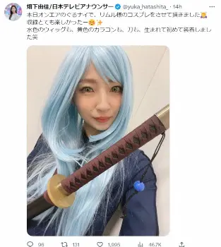日テレ・畑下由佳アナ “初体験だらけ”リムル様コスプレ披露に「可愛い」「似合ってます」「最高」