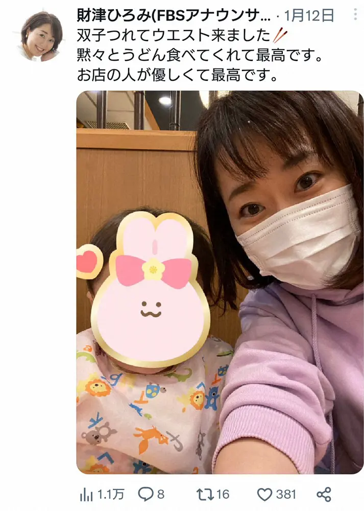 福岡放送・財津ひろみアナウンサーツイッター(@zay2hiro3)から 育児中の女子アナ 子供預けられず、急きょ子連れ出勤 会社の対応に絶賛… ギャラリーで見る この記事のフォト 2023年02月18日の画像一覧 もっと見る 2023年02月18日の画像をもっと見る