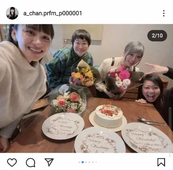 テクノポップユニット「Perfume」のあ~ちゃんこと西脇綾香が18日までに自身のインスタグラムを更新。豪華メンバーでの誕生日会ショットを披露した。