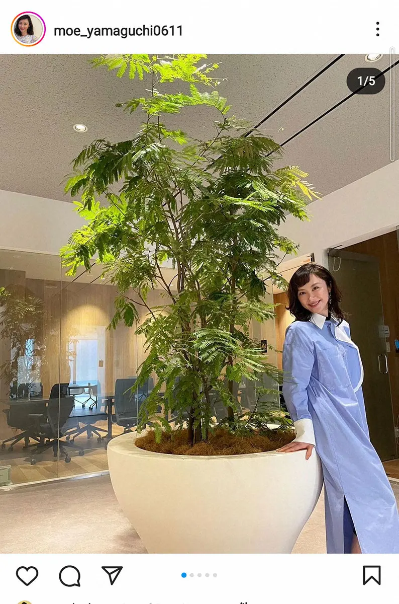 タレントの山口もえ(45)が18日、自身のインスタグラムを更新。シャツワンピース姿でポーズをとったものの、「隠したつもり」のインナーが見えてしまったことを明かした。