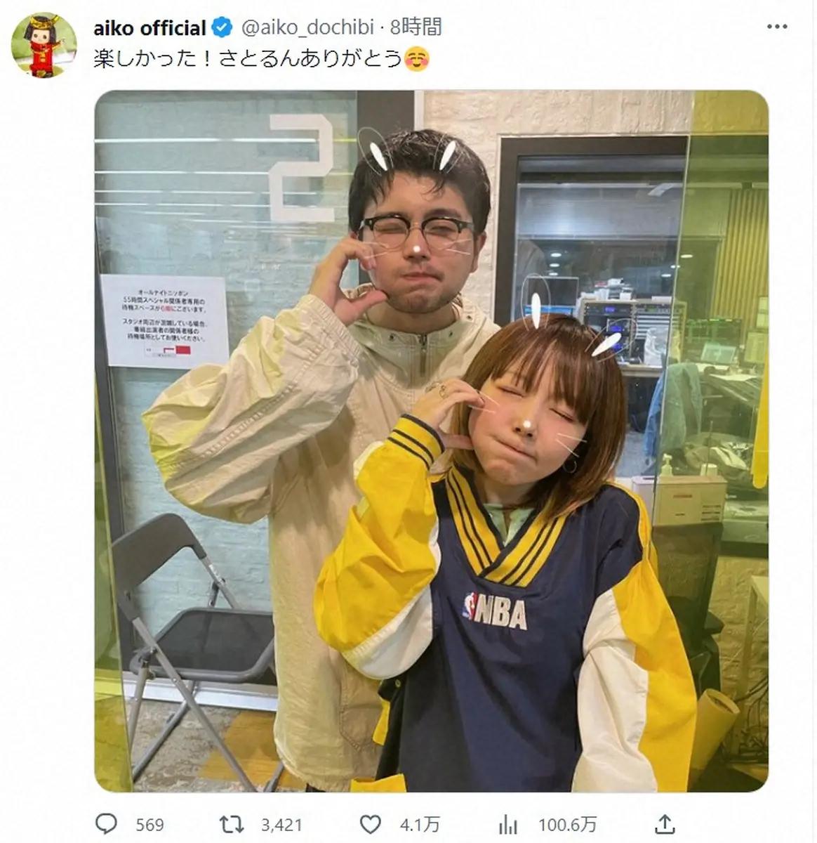 投稿には「お二人のラジオ最高でした!」「あいにゃこさとるん可愛えええ」「ふたりとも可愛い」「また絶対二人で帰ってきてください」「やっぱ、さとるんとaikoはお似合いだね」「後記まで悶絶な可愛さです」「何ですか、この可愛い写真は」との声が寄せられている。