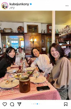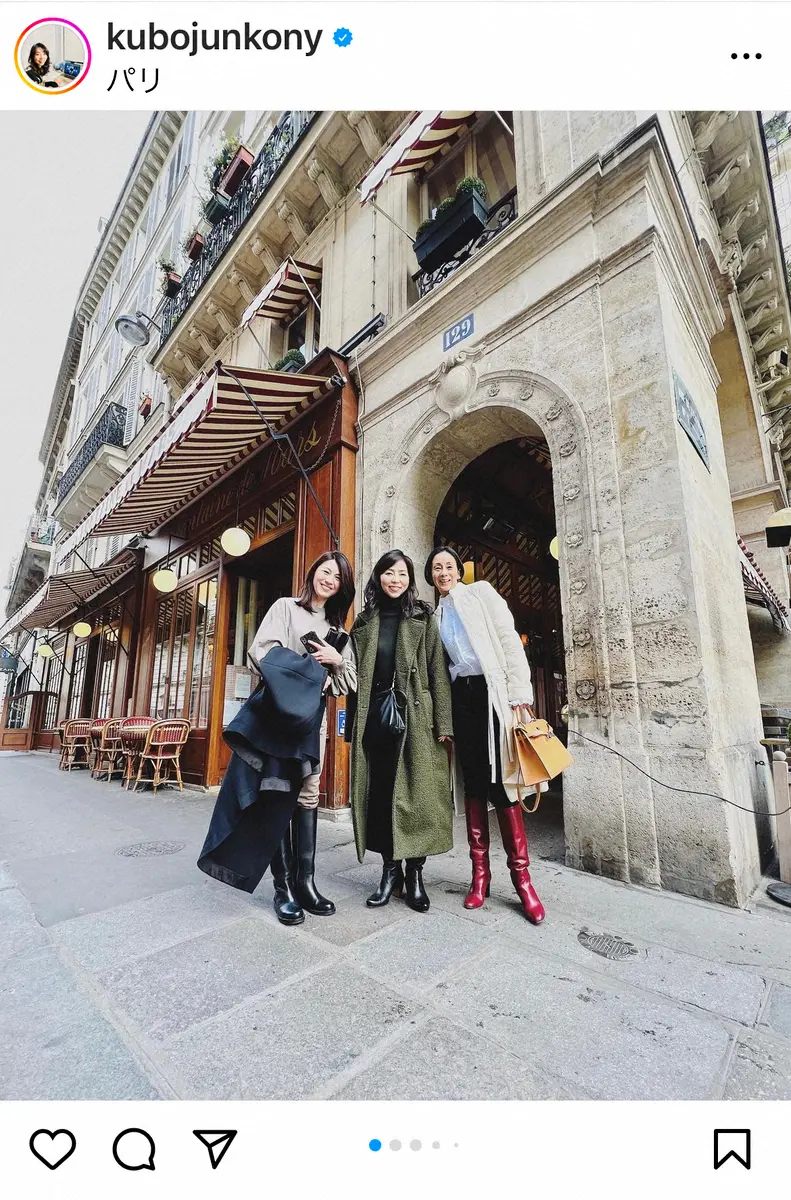 前の投稿で愛娘の「スキー休み」でパリに滞在していることを報告していた久保アナ。この日は「江里子さんと塔子さん」と記し、そのパリで生活している“先輩”フリー、2人と再会したことを報告。「NHKの生放送以来、1年半ぶりの再会。いっぱい笑って、いっぱい喋って、あっという間の3時間でした」とつづった。