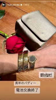 また道明寺、桜餅を食べながら「めちゃくちゃおいしい!」と興奮する姿や、「長年のバディー」というブルガリの腕時計の電池交換も報告していた。