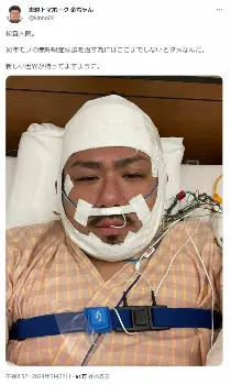 お笑いコンビ「鬼越トマホーク」の金ちゃん(37)が22日、自身のツイッターを更新。検査入院したことを明かした。