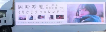 アドトラックには「岡崎紗絵 4月はじまりカレンダー」の文字とマフラーを巻いた岡崎のアップの姿が掲げられている。1月末にも渋谷周辺を走行。見かけた人からは「カワイイ!」「紗絵ちゃん、カレンダー出したんだ!!」などの声が続出した。