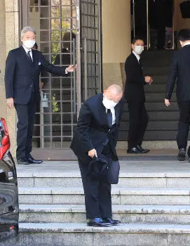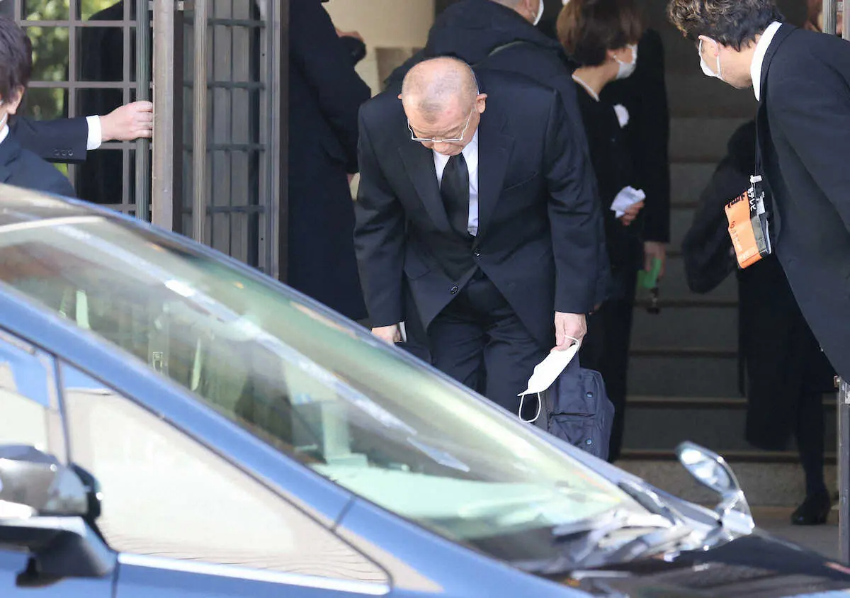 <笑福亭笑瓶さん告別式>車に乗って引き揚げる前に一礼する笑福亭鶴瓶(撮影・篠原岳夫)
