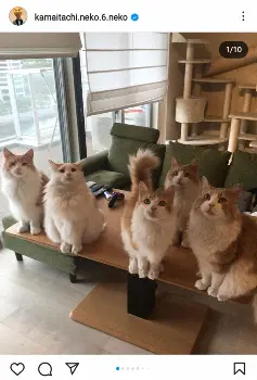 この日の更新では「今日はチャイ、のび太の事をお話しさせてください」と前置きし、「チャイは去年、のび太は先日亡くなりました。ふたりとも同じ急性腎不全でした」と悲しみの報告。のび太はチャイの父親で、「我が家ではお花やアロマ、洗剤など猫ちゃんが食べたり舐めたりしてしまったら危ないものに人一倍気を使っているので、この子達の血筋なのかも知れないとの事でした」と明かし、「チャイものび太も私の人生そのものでした。今の私が居るのも本当にこの子達のおかげです。どんな時もそばに居てくれて、一緒に乗り越え、寄り添ってくれた本当に大切で素晴らしい親友でした」と2匹への思いをつづった。