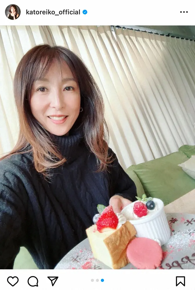 女優のかとうれいこ(54)が28日、自身のインスタグラムを更新。19日に54歳の誕生日を迎え、近影を公開した。