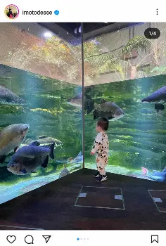 「#カワスイデート」のハッシュタグを付け、川崎市の「カワスイ 川崎水族館」で長男が水槽を泳ぐ魚たちに見入るショットを公開。カワスイにはアマゾンの熱帯雨林を再現したコーナーもあるが、「Q太郎興奮 アマゾンエリアでは これもこれも実際アマゾンで見たのよ と心の中で #アマゾンマウント にしてもピラルク超でけぇ」とユーモアたっぷりにつづった。