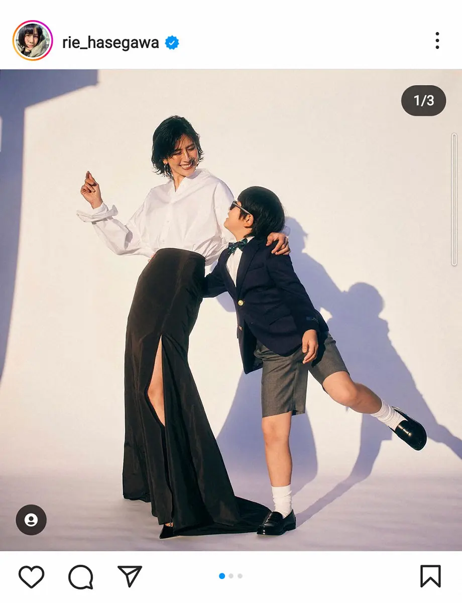 フォロワーからは「息子さんモデルデビューおめでとうございます」「素敵な写真」「素敵な親子です!」「ナイスカップル!」「最高です」「素敵なあったかい写真」などの声が寄せられていた。