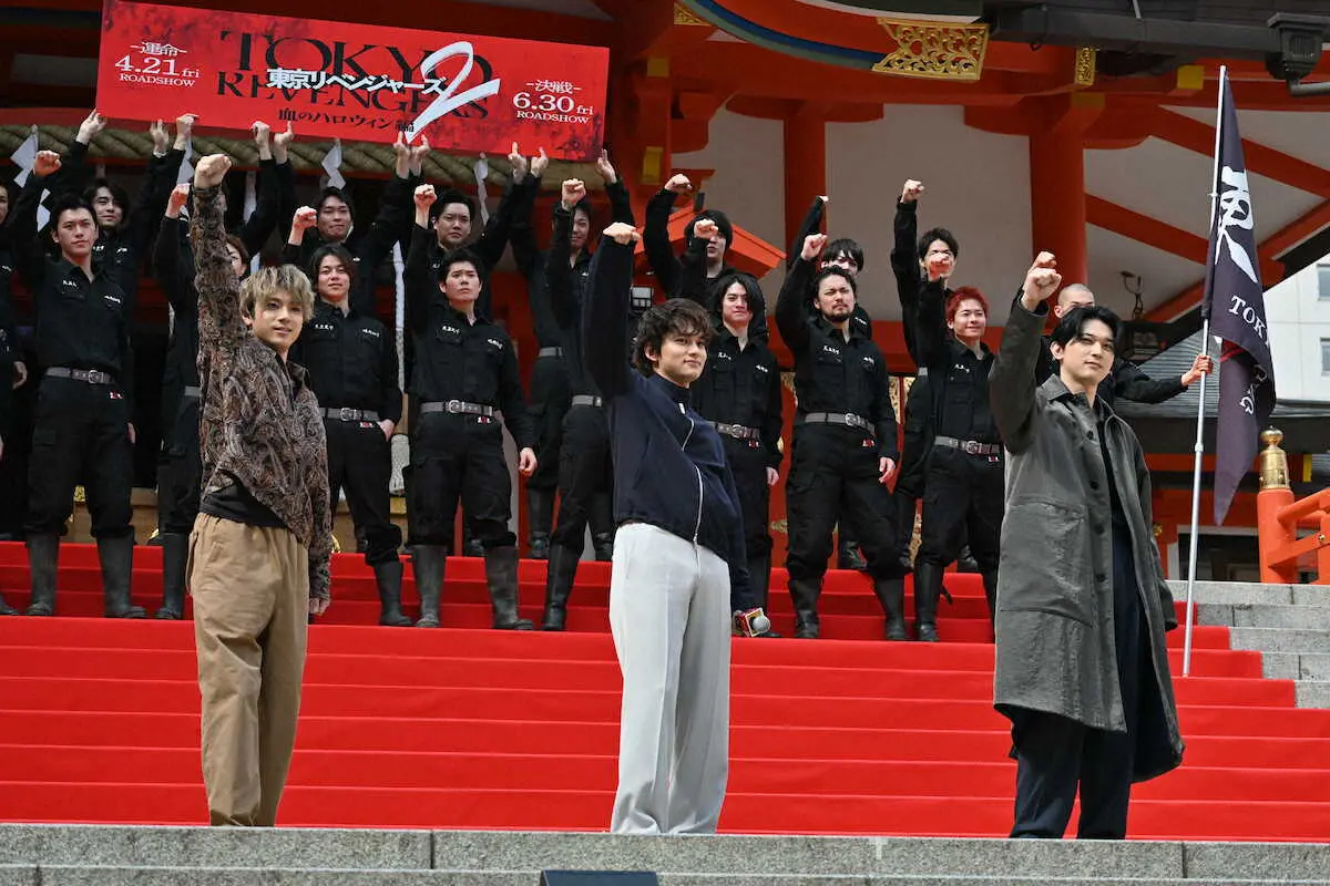 俳優の北村匠海(25)、山田裕貴(32)、吉沢亮(29)が2日、東京・新宿の花園神社で都内で映画「東京リベンジャーズ2 血のハロウィン編 ―運命―/―決戦―」(監督英勉)の決起集会イベントに出席した。