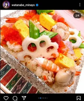 タレントの渡辺美奈代(53)が2日までに自身のインスタグラムを更新。ひと足早い“ひな祭り料理”を公開した。
