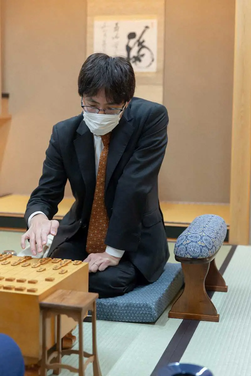 4月に開幕する第81期名人戦7番勝負の挑戦者を決めるA級順位戦最終9回戦の一斉対局が2日午前9時、静岡市で始まり、藤井聡太王将(20)=竜王、王位、叡王、棋聖含む5冠=と6勝2敗で並ぶ首位広瀬章人八段(36)は菅井竜也八段(30)と対局し、戦型は先手菅井の三間飛車へ進んだ。両者王を穴熊へ囲い、広瀬は金銀3枚、菅井は4枚の堅陣を敷いた。正午からの昼食休憩までに45手進んだ。