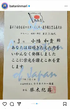 お笑いタレント、おばたのお兄さん(34)が5、自身のインスタグラムを更新。長野県の志賀高原で行われた全日本マスターズスキー選手権で3位に輝いたことを報告した、