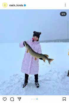 本田は極寒の氷上で紫色の衣装を着て演技をする姿や、ガンバレルーヤの2人と一緒に釣りをする姿の写真を投稿。「皆様本当にありがとうございました」とつづった。