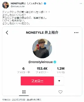 NON STYLEの井上裕介 Photo by スポニチ ノンスタ井上 恐怖!TikTokアカウント乗っ取り被害告白 「アカウントは… ギャラリーで見る この記事のフォト 2023年03月06日の画像一覧 もっと見る 2023年03月06日の画像をもっと見る