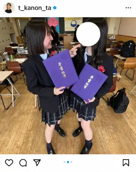 友人らとの卒業ショットをアップし、「辛い時も楽しい時も沢山の友達に支えられ、充実した高校生活を送ることが出来ました!みんな本当にありがとう」とつづり、ハッシュタグでも「#JK終了」と添えた。