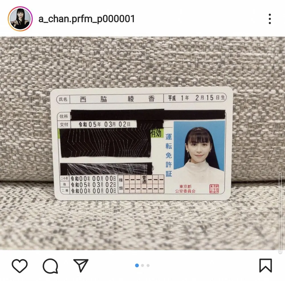 【画像・写真】Perfumeあ~ちゃん 「運転免許取れました」免許証写真に「写真決まってるう~」「メッチャ美人」