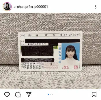 テクノポップユニット「Perfume」あ~ちゃんこと西脇綾香(34)が8日までに、自身のインスタグラムを更新。運転免許証を公開した。