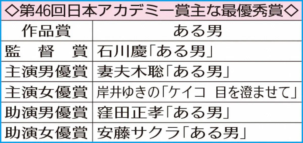 第46回日本アカデミー賞 レッドカーペットに登場した優秀助演女優賞の(左から)有村架純、安藤サクラ、尾野真千子、清野菜名、永野芽郁、松本穂香 Photo by 代表撮影 【日本アカデミー賞】安藤サクラが最優秀助演女優賞 子育てと撮影で悩み… ギャラリーで見る この記事のフォト 2023年03月10日の画像一覧 もっと見る 2023年03月10日の画像をもっと見る