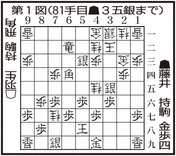 ここまでの5局で最も形勢が揺れ動いた第5局。直線的に攻める藤井に、曲線的にしのぐ羽生。2日目午後、「一度は決め損なっても立て直した、藤井王将の精神力を感じました」と評価したのが、81手目▲3五銀(第1図)だった。