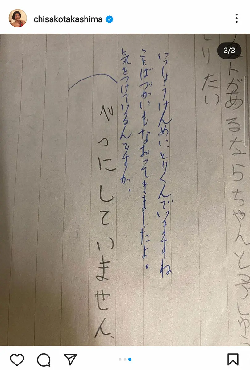 高嶋ちさ子 Photo by スポニチ 高嶋ちさ子 小2の時に書いた作文に「大ショック!」 先生のコメントには… ギャラリーで見る この記事のフォト 2023年03月13日の画像一覧 もっと見る 2023年03月13日の画像をもっと見る