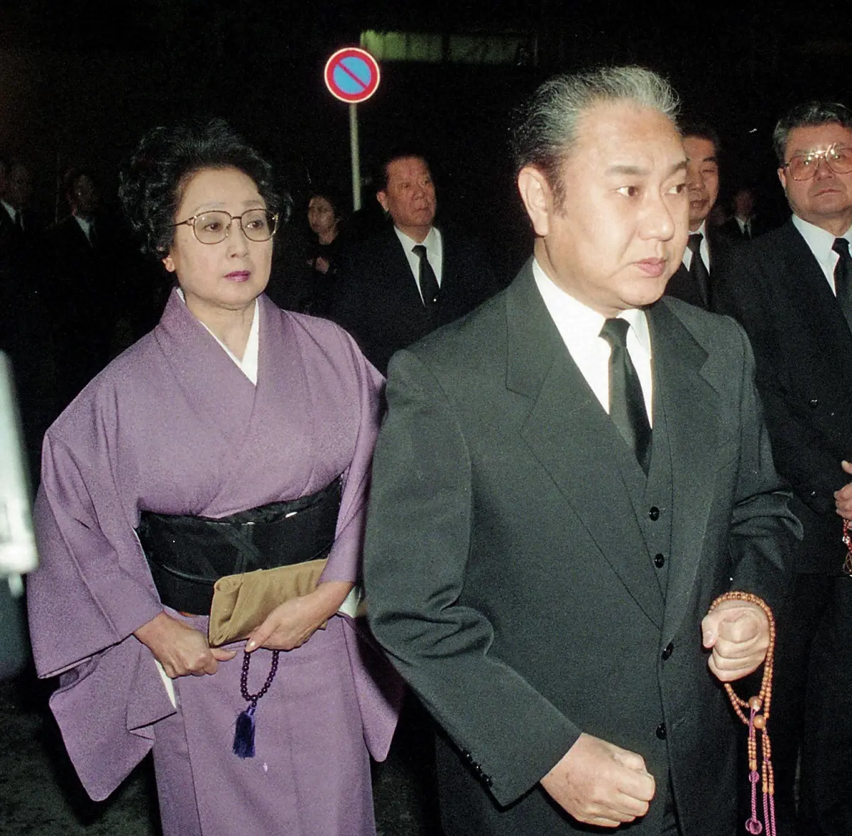 1995年、中村梅幸さんの弔問に駆け付けた中村雁次郎と扇千景夫妻