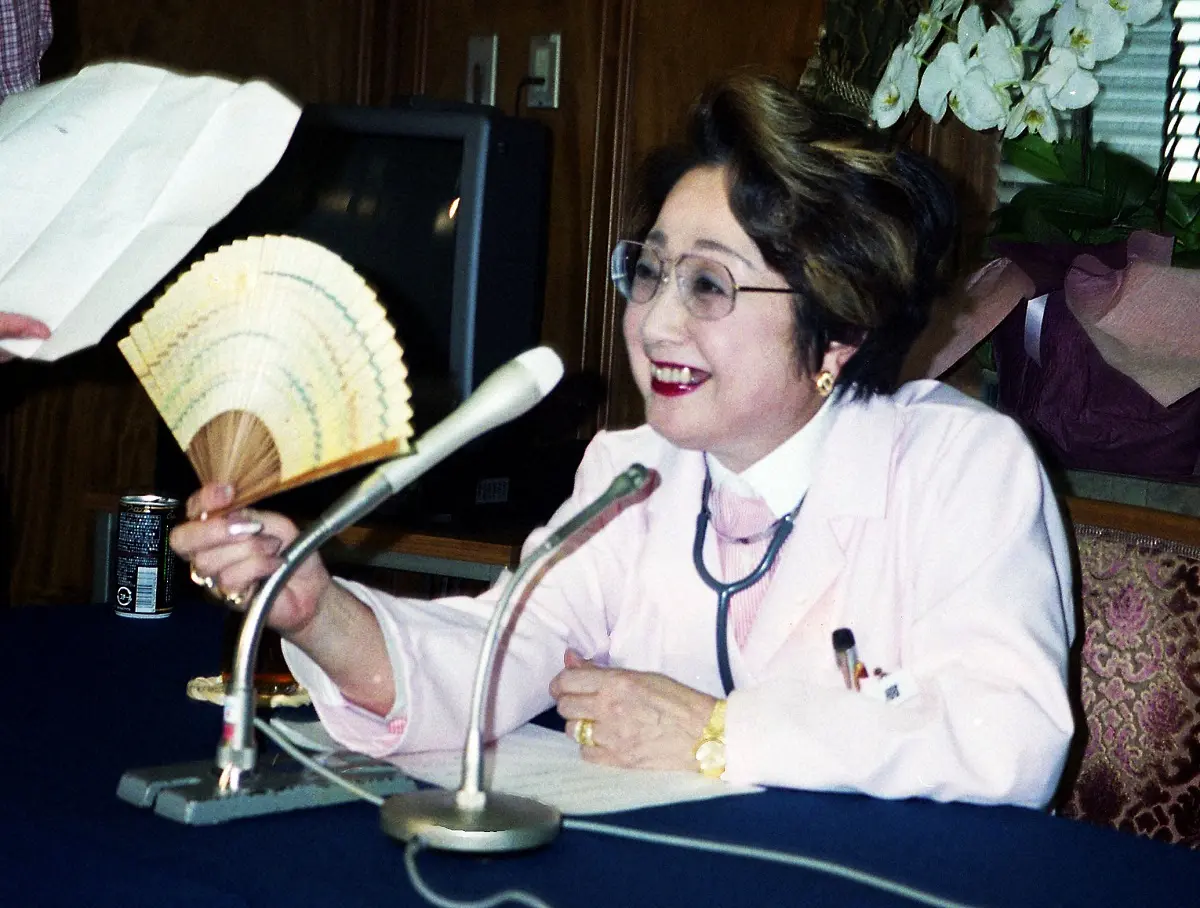 2001年、保守党のCM撮影で笑顔を見せる扇千景党首