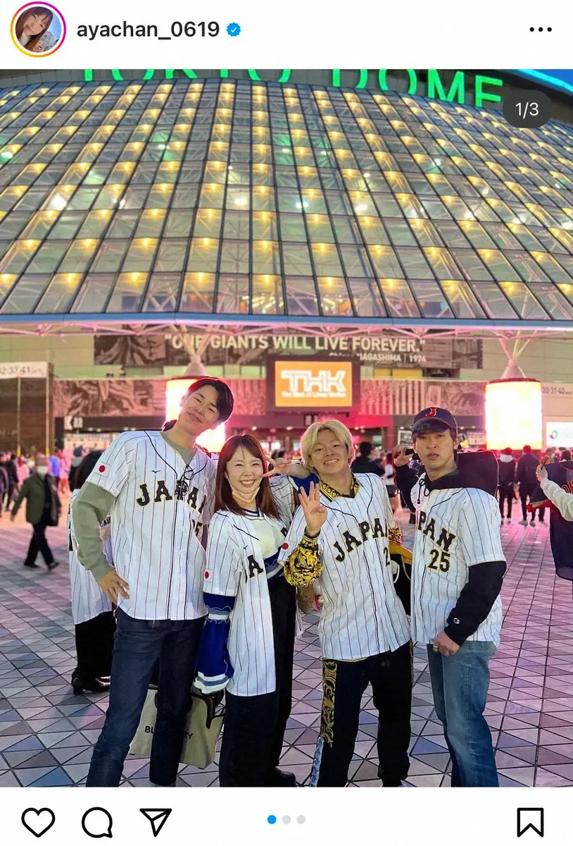 あやなん ドームでのWBC観戦を報告「このメンバーで観戦流石に楽しすぎ」 息子が中継に映り込みも?