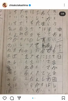 バイオリニストの高嶋ちさ子(54)が13日、自身のインスタグラムを更新し、小学校2年生の時に書いた作文を披露した。