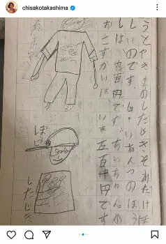 高嶋は「休み中に片付けをしてたら、小2の時の日記が出て来て大ショック! あまりに字も絵も下手な上、雑で感じ悪い…完全に男子の日記だよね」とし「自分がジャイアンツファンだった事にびっくり!? #色々ひどい」とつづった。