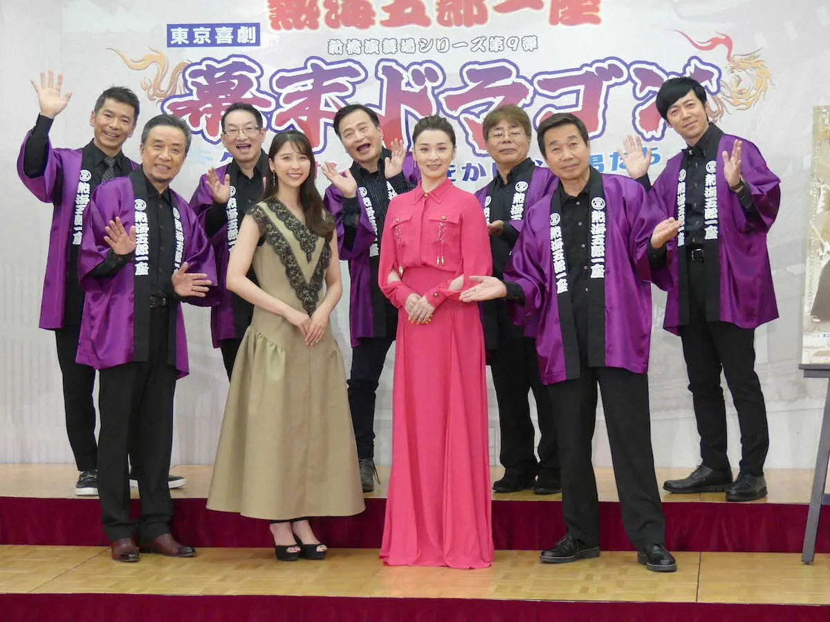俳優の三宅裕司(71)が主宰する熱海五郎一座の喜劇舞台「幕末ドラゴン~クセ強オンナと時をかけない男たち~」(5月31日~6月25日、東京・新橋演舞場)の製作発表会見が13日、都内で開かれた。三宅、渡辺正行(67)、ラサール石井(67)ら一座のメンバーと、ゲスト出演する檀れい(51)、「ももいろクローバーZ」の玉井詩織(27)が出席した。